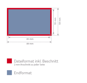 Liefern Sie bitte die Vorder- und Rückseite getrennt an. Vermeiden Sie Passer- und Schnittmarken. Alle Schriften müssen in Kurven (Pfade!) gewandelt sein.